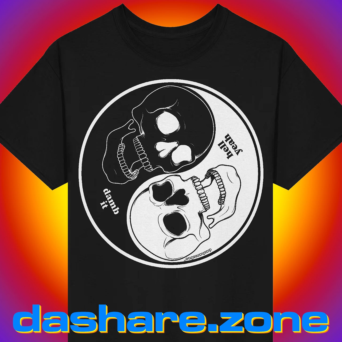 admin here, first of all check out da ying yang “damb it / hell yeah” a mug and tshirt i made with skull’s,